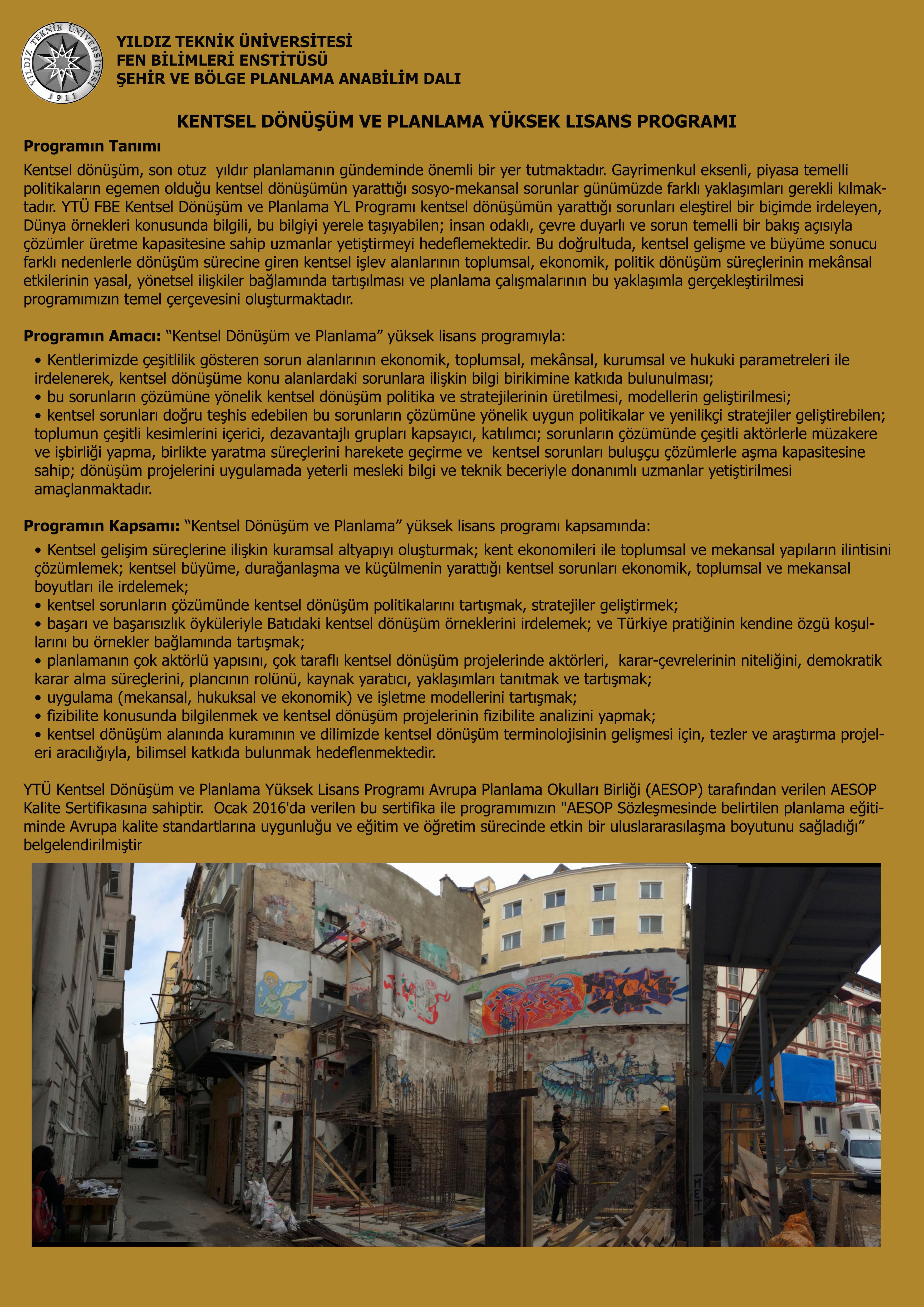 Şehir ve Bölge Planlama Bölümü "Kentsel Dönüşüm ve Planlama Yüksek Lisans Programı"hk