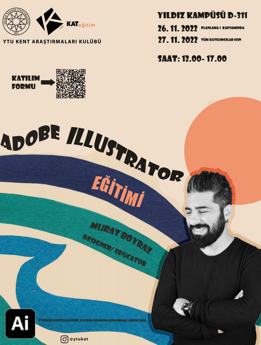 26.11.2022 ve 27.11.2022 tarihlerinde 12.00-17.00 saatleri arasında Murat Boyraz tarafından Adobe Illustrator eğitimi verilecektir.